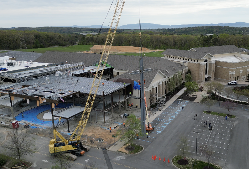 Topped out the classroom addition at First Baptist Cleveland by setting the 73’ high, 9 ton cross.